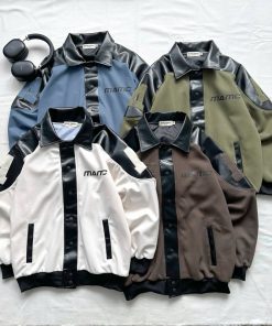 Sẵn Áo Jacket MM PHỐI TAY DA màu XÁM/KEM Nam Nữ Unisex Áo khoác form rộng Jaystoree-thoitrangcenter