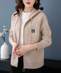Sẵn Áo Khoác cardigan Dệt Kim Có Mũ Trùm Dáng Rộng Thời Trang Thu Đông Phong Cách Mới Cho Nữ-thoitrangcenter