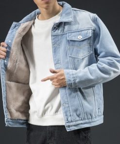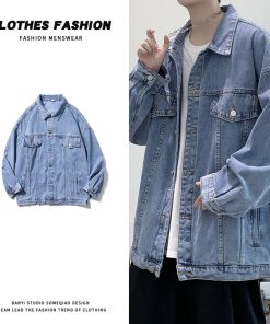 Sẵn Áo khoác Denim nam mùa thu và mùa đông quần áo rộng rãi thông thường-thoitrangcenter