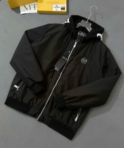 Sẵn Áo khoác gió có mũ nam Philipp Plein thêu logo sắt ngực mũ nỉ 2 lớp in chữ lót trần bông boy phố AK199P-thoitrangcenter