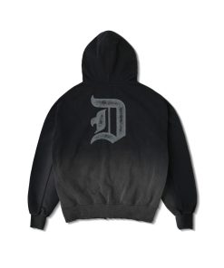 Sẵn Áo Khoác Hoodie DAPPERANDMORE Trash Zipped Wash Vải Nỉ Chân Cua 100% Cotton In Trame Hiệu Ứng Mài Rách – Black-thoitrangcenter