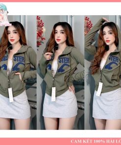 Sẵn Áo Khoác Nữ Thêu Chữ Holis Chất Liệu Thun Gân Tay Xỏ Ngón 4 Túi Freesize Dưới 60kg Bubble Gum-thoitrangcenter