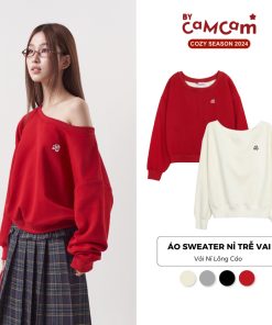 Sẵn Áo Sweater Trễ Vai Nỉ Lông Cáo Logo Mini Nhiều Màu Nữ Tính Thu Đông 2024-thoitrangcenter