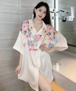 Sẵn Bộ Đồ Ngủ Nữ Mùa Hè Ren Váy Ngủ Băng Lụa Tay Ngắn Mỏng Phong Cách Rời Kích Thước Lớn Gợi Cảm Áo Sơ Mi Bộ Đồ Ngủ Đầm Loungewear Nữ-thoitrangcenter