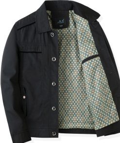 Sẵn Bố Nguyên Chất Cotton Áo Khoác Xuân Thu Nam Trung Niên Mùa Thu Ve Áo Nút Xuống Áo Khoác Nam Trung Niên Và Người Cao Tuổi-thoitrangcenter