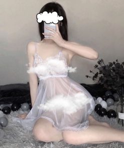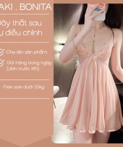 Sẵn Bộ đồ váy ngủ nữ 2 dây sexy DK18 vải xuyên thấu hở lưng cột nơ kèm quần lót lọt khe gợi cảm-thoitrangcenter