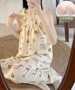 Sẵn MEIQIYI Đầm ngủ đũi hai dây bản to thắt nơ có kèm mút ngực-thoitrangcenter