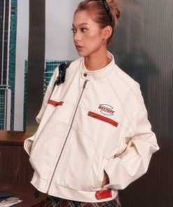 Sẵn Tianlesiwei Mỹ retro dáng rộng đệm vai áo khoác bay mùa thu da PU phong cách xe máy áo khoác-thoitrangcenter