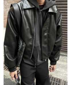 Sẵn Tianlesiwei Mùa thu retro nam nữ dáng rộng giản dị áo khoác da pu kiểu dáng xe máy đường phố cao cấp kiểu Mỹ-thoitrangcenter