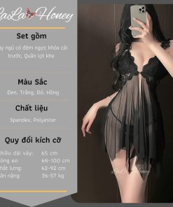Sẵn Váy Ngủ 2 Dây Sexy Gợi Cảm Xuyên Thấu Có Đệm Mút Tôn Ngực Khóa Cài Trước Quyến Rũ BẢN CAO CẤP – LALA HONEY-thoitrangcenter
