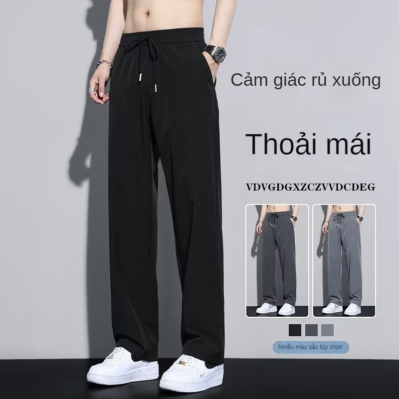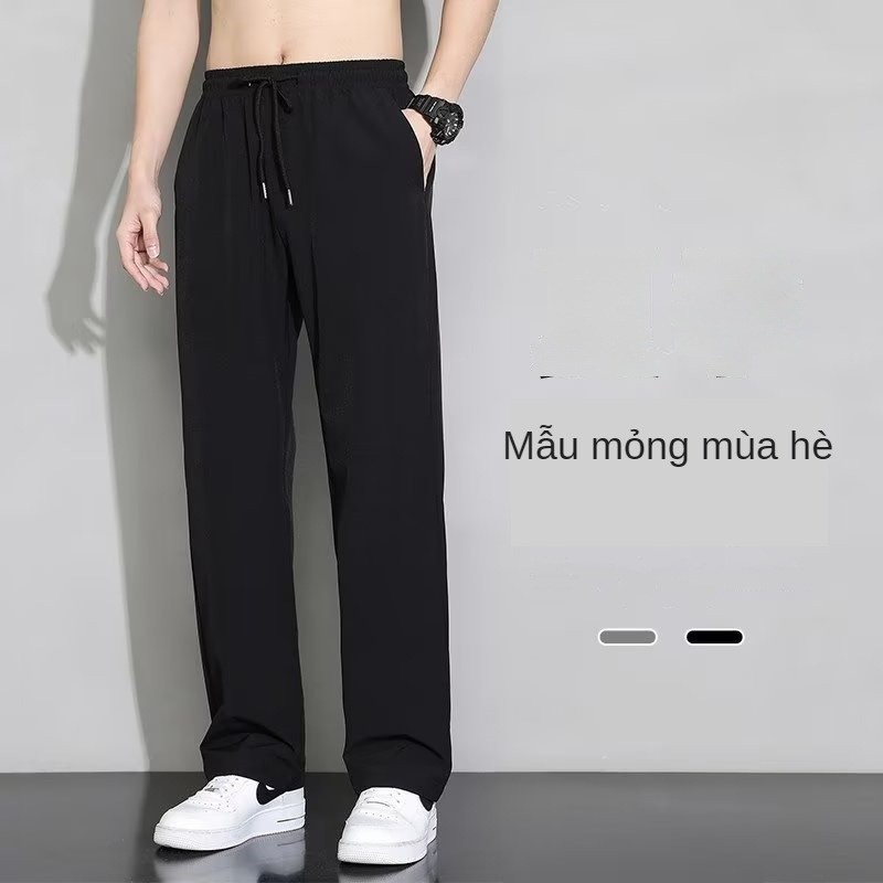 12BOXER Quần dài nam xuân hè, quần lụa băng mỏng nam, quần tây nam, quần thể thao ống rộng đơn giản kiểu Hàn Quốc, thoáng mát Thời Trang Center