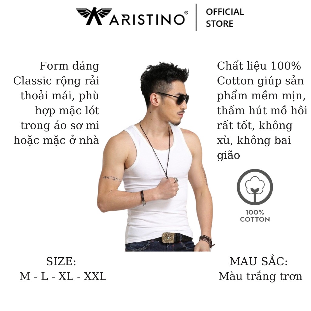 Áo ba 3 lỗ nam cao cấp Aristino thun may ô lót trong sơ mi màu trắng trơn đơn giản dáng Classic vải cotton mềm mịn AC21 Thời Trang Center