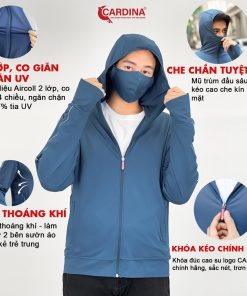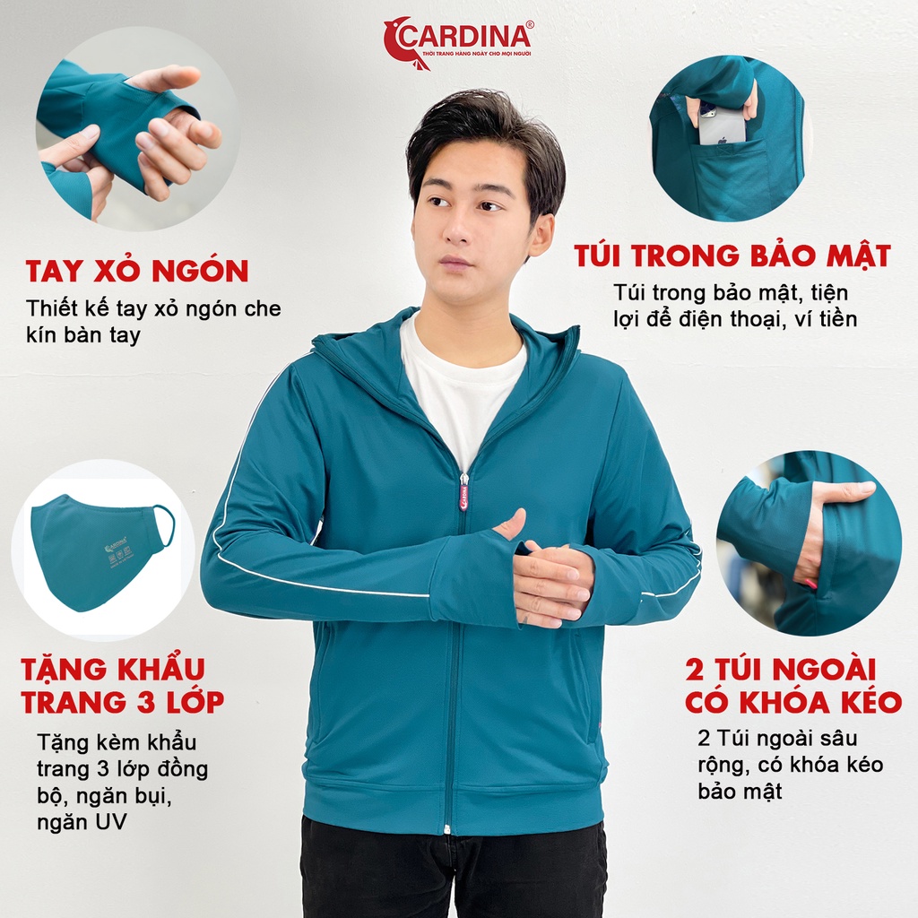 ➤ Áo chống nắng nam CARDINA thiết kế viền thể thao 2 bên tay áo, thiết kế : 2 túi sườn có khóa kéo chìm + túi trong sâu chống trộm.