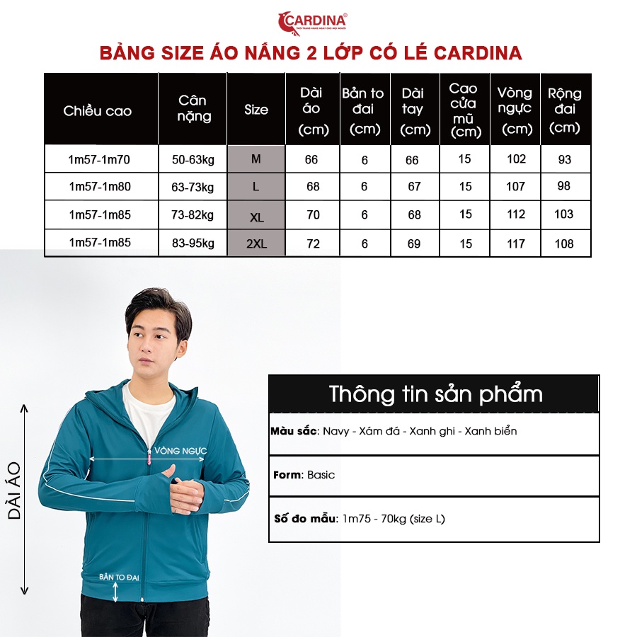 ̂ ̉ ̂̉ : Áo chống nắng nam CARDINA 2 lớp chất thun lạnh cao cấp.
