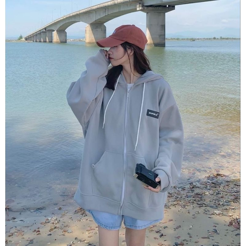 Áo Hoodie Nữ Form Rộng Mũ 2 Lớp In Chữ DUMBLE màu xám Thời Trang Center