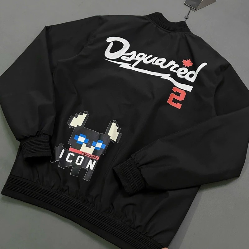 Áo khoác bomber gió nam nữ DSQ in chữ D2 tia sét lá phong phối hình chú chó Minecraft ICON 2 mặt mẫu mới 2025-thoitrangcenter
