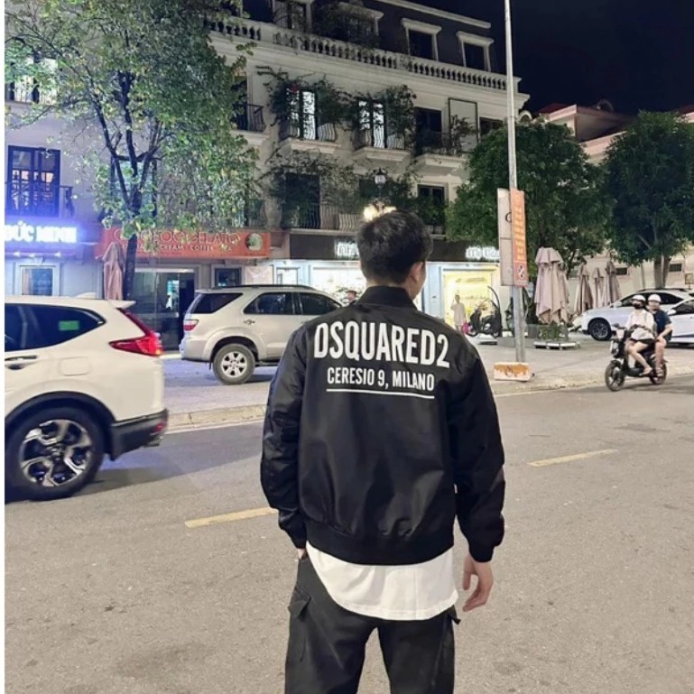 ✔️ Tên sản phẩm: Áo khoác bomber gió nam nữ Dsq2 đen thêu chữ ngực phối in chữ Dsquared2 Ceresio 9 Milano sau lưng DSQINMIALO