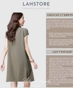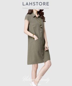 Đầm suông cổ sơ mi LAHSTORE chất đũi mềm mát thiết kế túi bên hông trẻ trung sang trọng (Xanh Rêu) Thời Trang Center