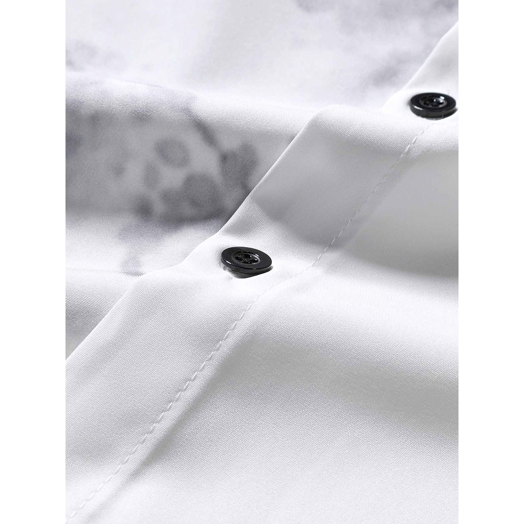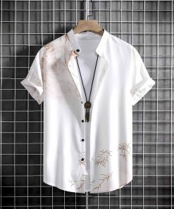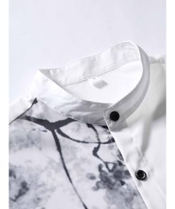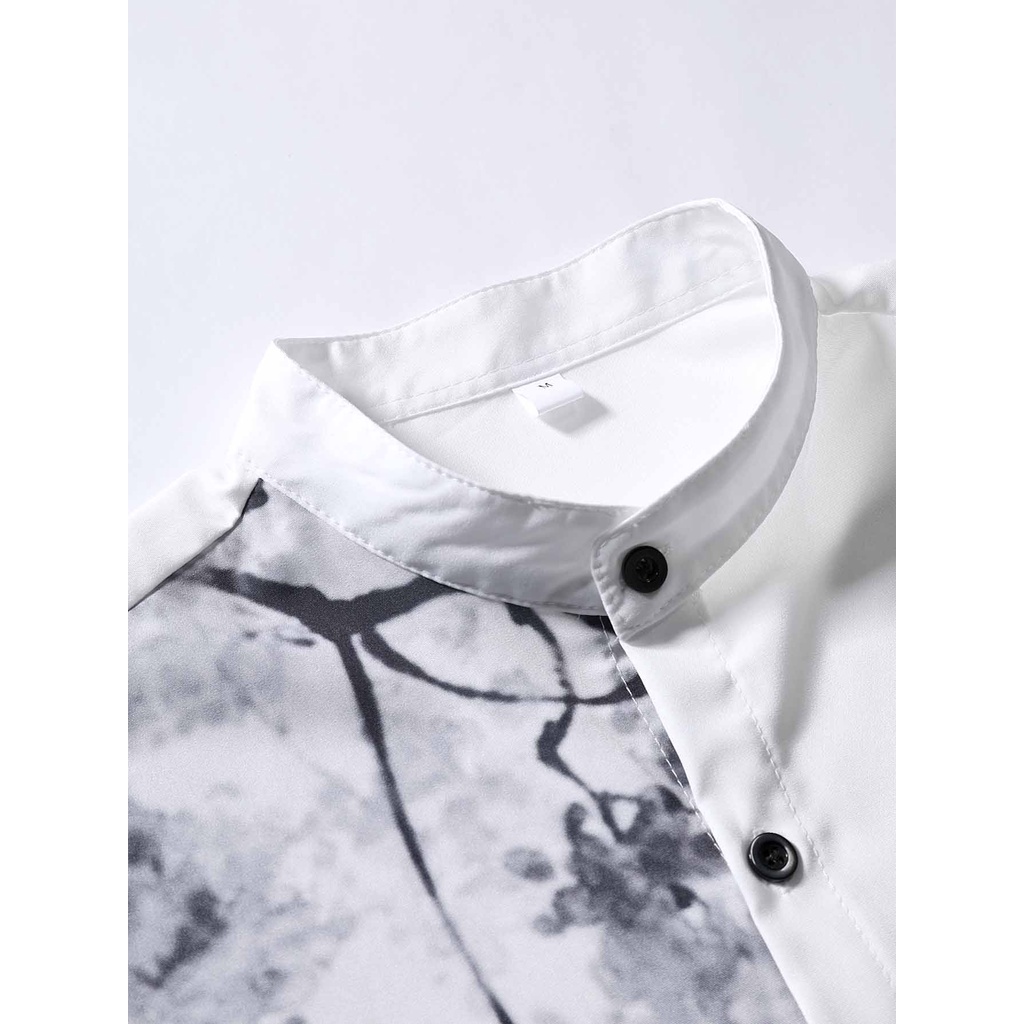 Mới Nam Retro Đứng Cổ Tay Ngắn Nút Cotton Màu Trơn Áo Sơ Mi Họa Tiết Hoa Plus Kích Thước Thời Trang Center