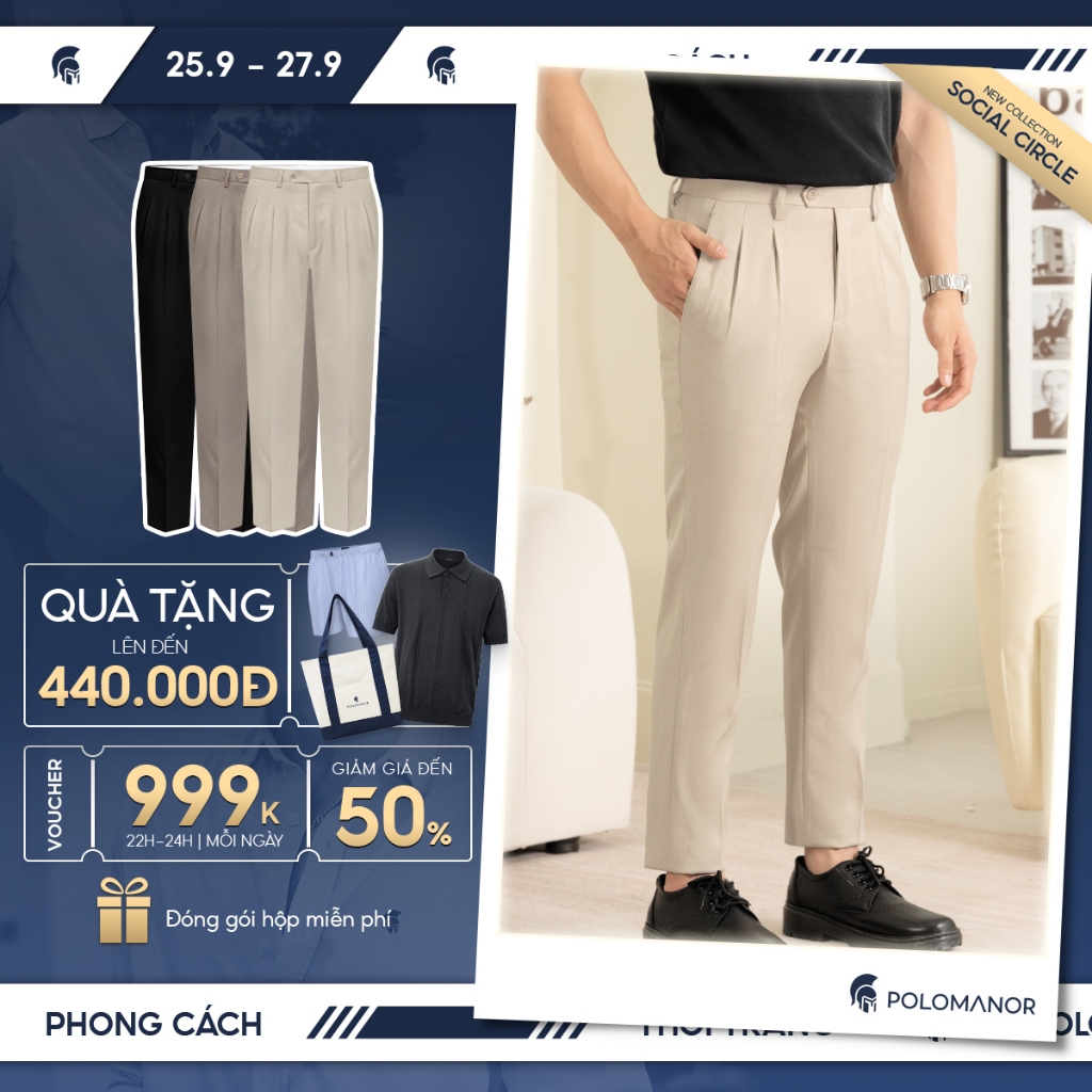 Quần dài tây nam CLASSIC PANTS, BST Social Circle vải tây cao cấp, kiểu dáng xếp li – POLOMANOR Thời Trang Center