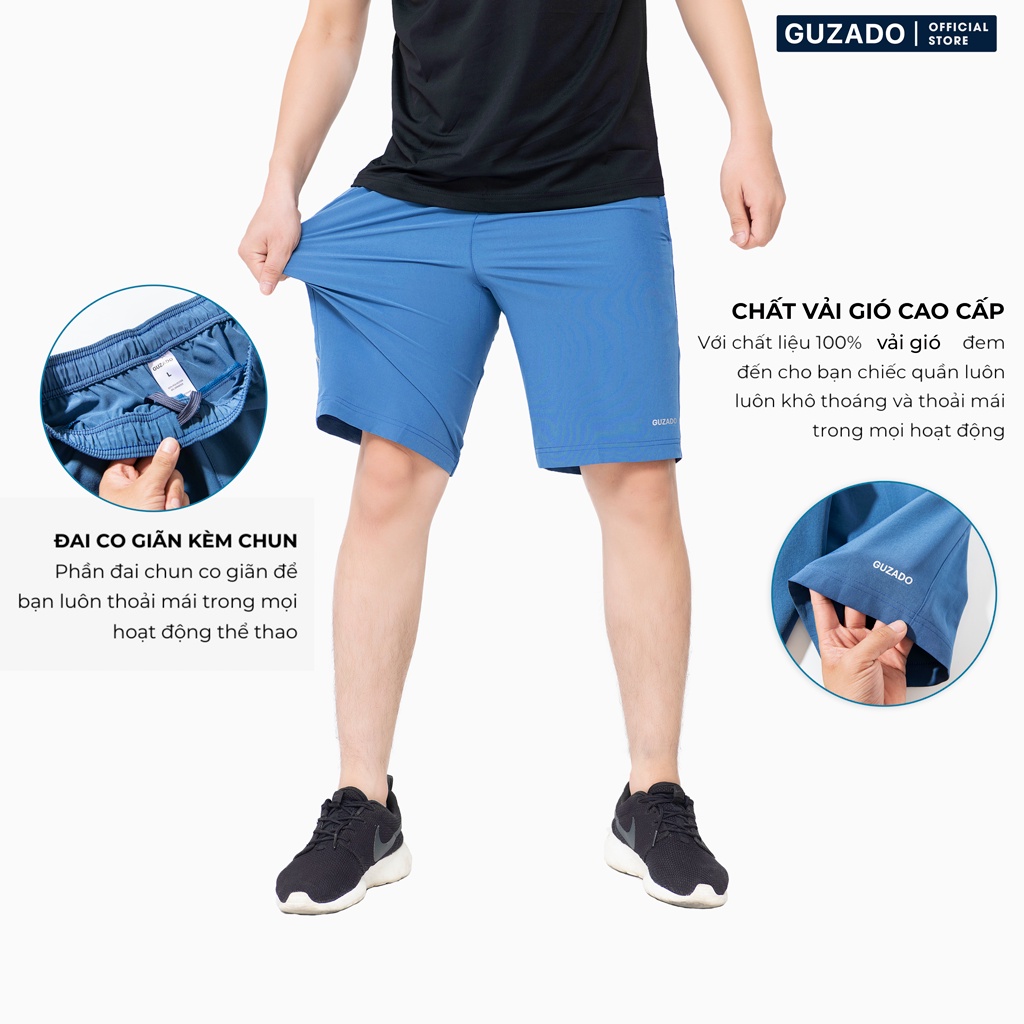 Quần Đùi Nam GUZADO Vải Gió Thể Thao Cạp Chun Mềm Mại,Co Giãn Vận Động Thoải Mái Màu Basic GSR01 Thời Trang Center