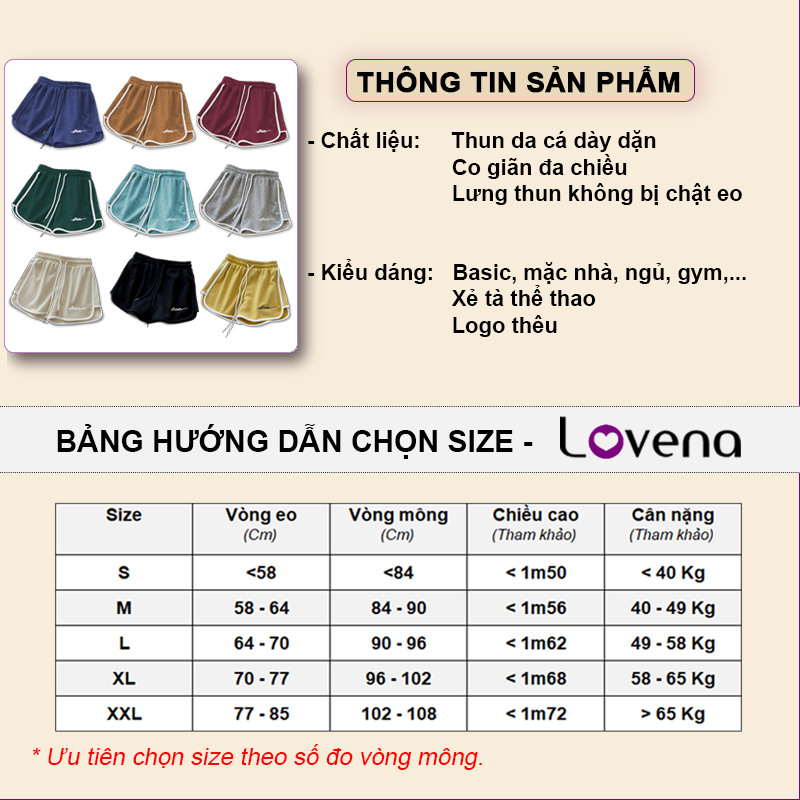 Tên SP: Quần Đùi Nữ Mặc Nhà Ống Rộng Cotton Da Cá Lovena QN02