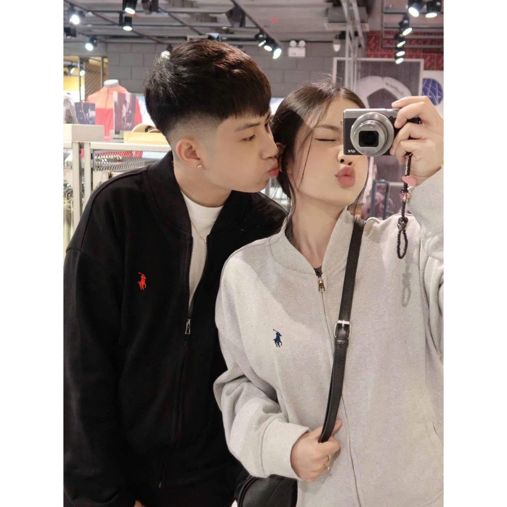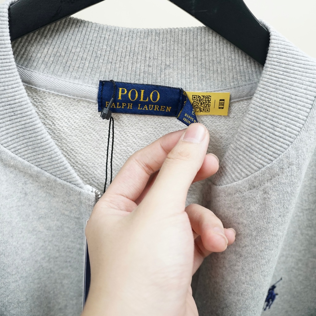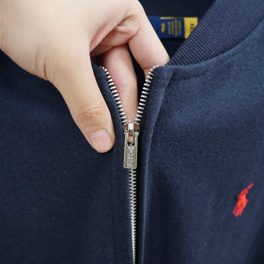 Áo Bomber Ralph Lauren Dây Kéo Nỉ Chân Cua Khoác Thêu Ngựa Dày Dặn Form Châu Âu Oversize Thời Trang Center