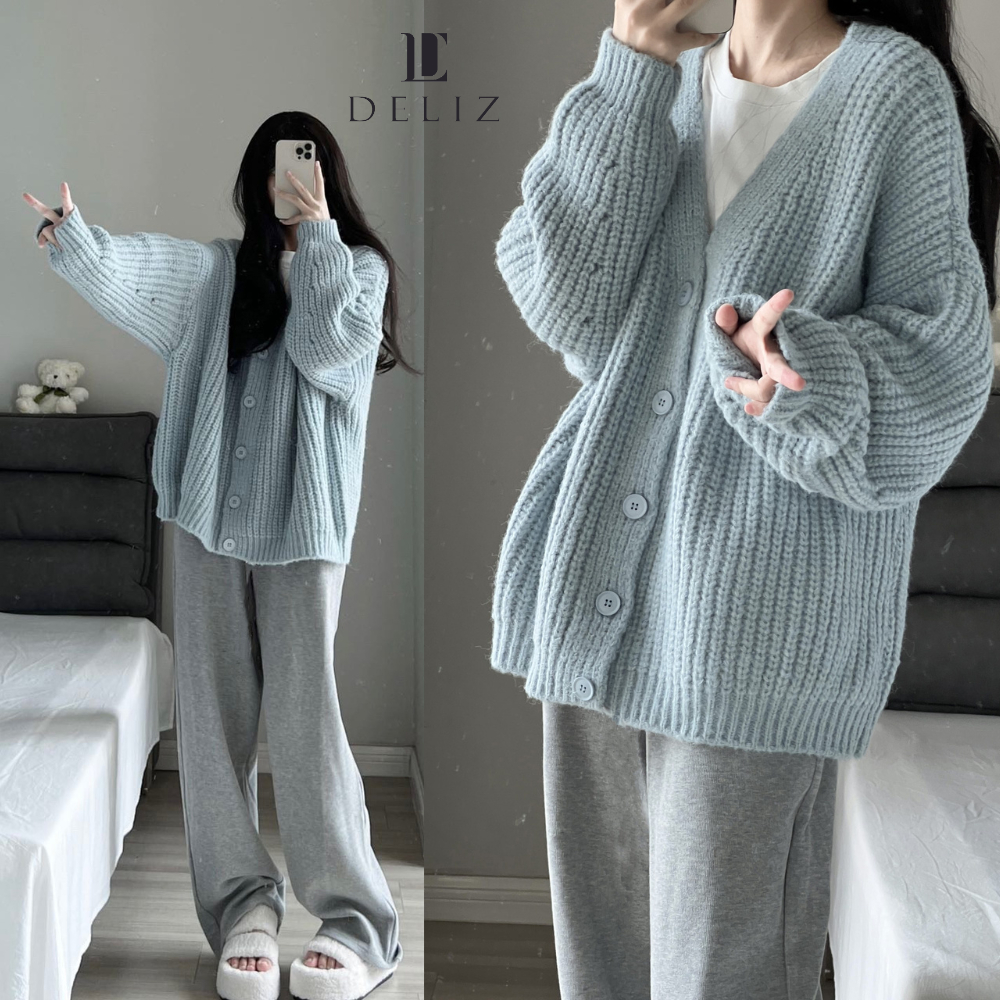 Áo cardigan khoác ngoài chất len mềm dày dặn dáng rộng dài tay nhiều màu freesize basic phong cách hàn quốc DELIZ Thời Trang Center