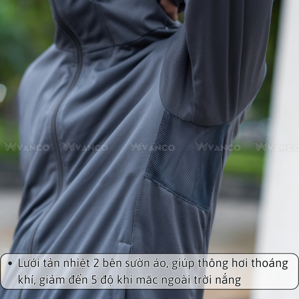 Lưới tản nhiệt 2 bên sườn áo, giúp thông hơi thoáng khí, giảm đến 5 độ khi mặc ngoài trời nắng