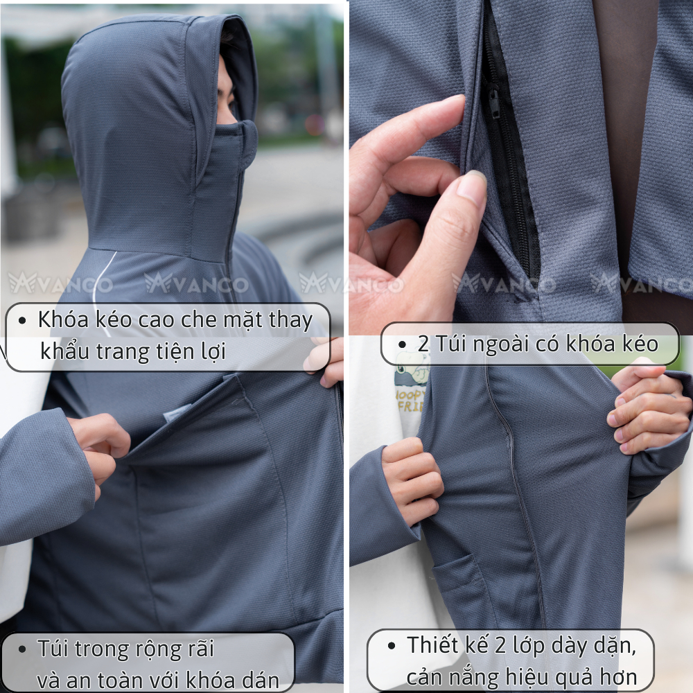 Tinh tế trên từng đường may, tỉ mỉ trên từng chi tiết, áo khoác chống nắng nam có thiết kế kín đến cả mũi, thay thế khẩu trang