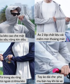– Áo Chống Nắng thiết kế cải tiến mới nhất 2024, với phần khóa kéo cao che mặt thay thế được cho khẩu trang.