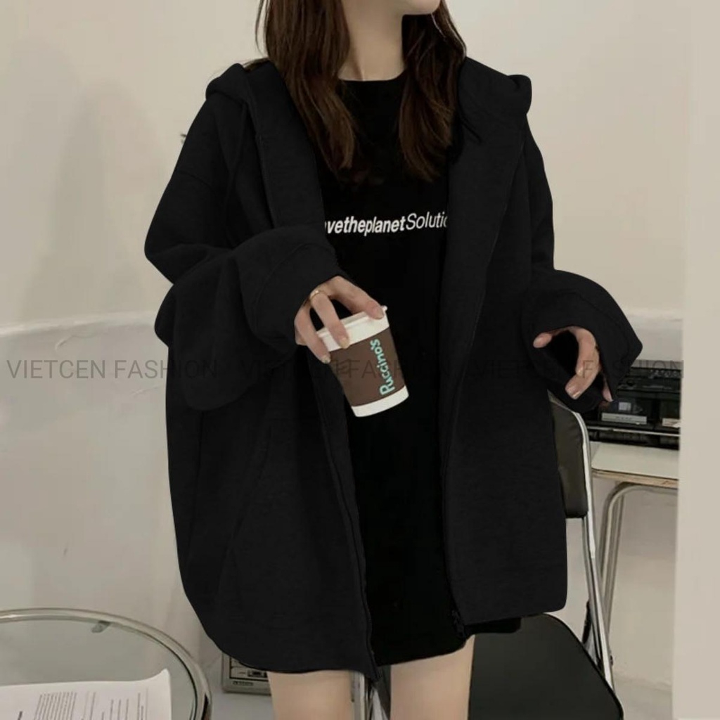 Áo Hoodie zip chất nỉ hàn và nỉ bông BLESSING dành nam nữ form rộng. Áo Khoác nỉ hoodie zip mẫu trơn basic Thời Trang Center