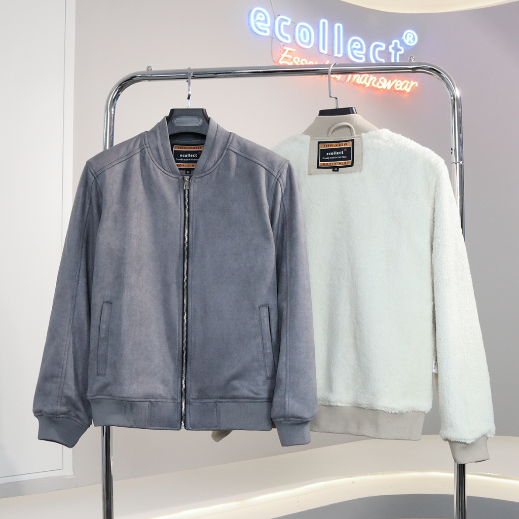 Áo khoác nam da lộn cổ bomber Ecollect bên trong có lót lông cừu dày ấm
