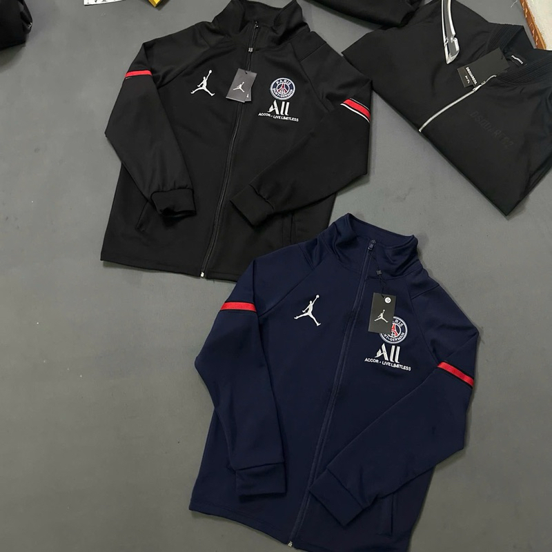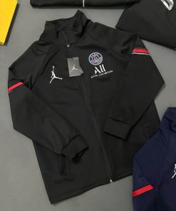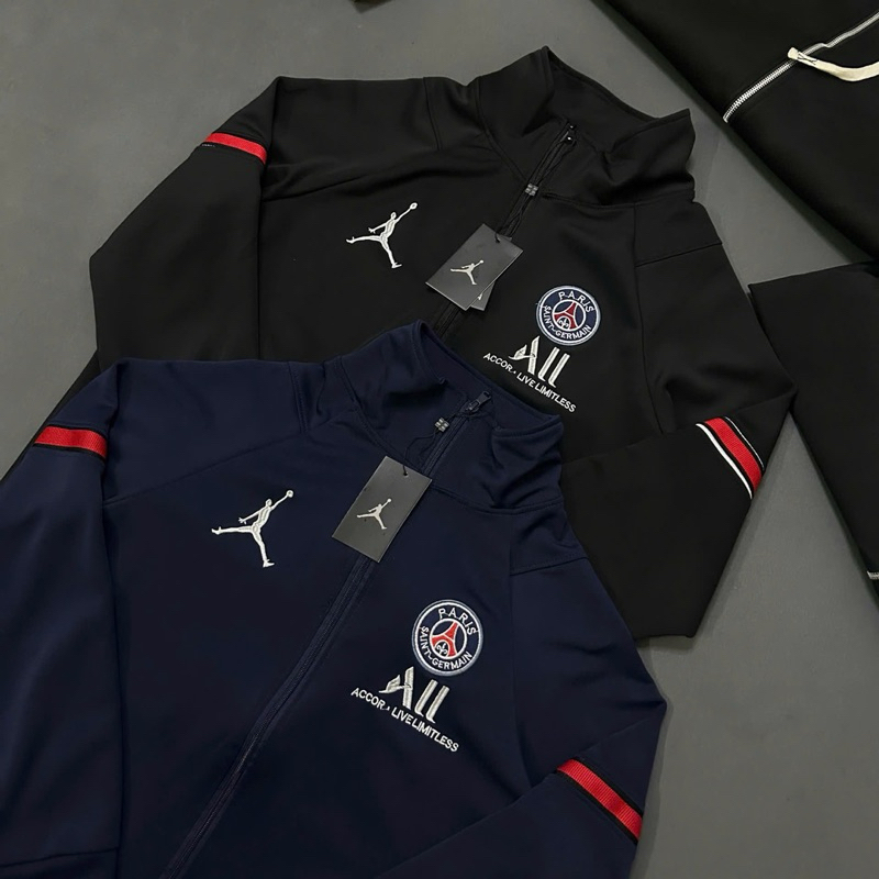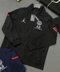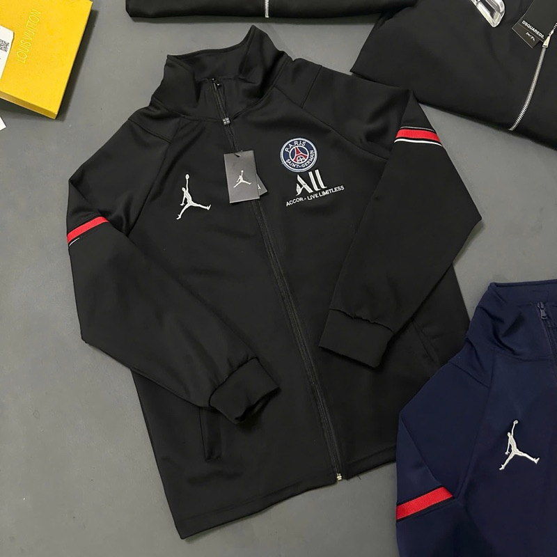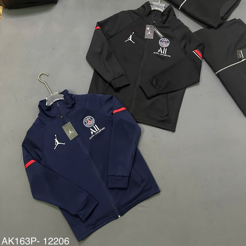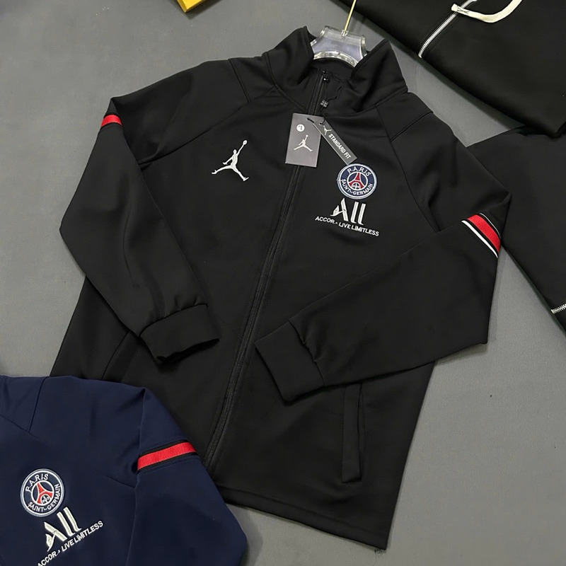 Sẵn Áo khoác bomber nam nữ vải nỉ da cá PS cổ trụ cao trước ngực dệt hình người logo paris tròn chữ All thêu vạch đỏ tay-thoitrangcenter