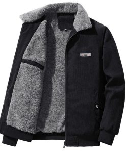 Áo khoác cotton nam HANLU vải nhung cộng với nhung dày cổ đứng da cừu áo khoác thông thường Thời Trang Center