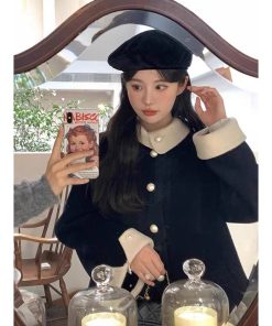 – Tên sản phẩm: Áo khoác dạ tiểu thư Forgirl dáng suông dài cổ bẻ gài cúc ngọc T005