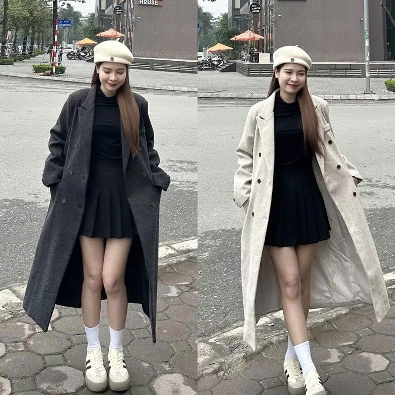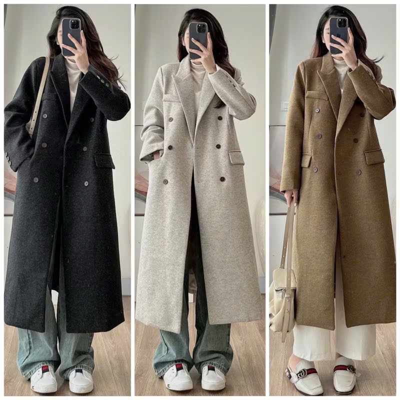 Áo khoác dạ nữ dáng dài Chakovet áo măng tô form rộng cổ bẻ dày dặn thích hợp mặc mùa đông siêu ấm áp dễ phối đồ A5045 Thời Trang Center