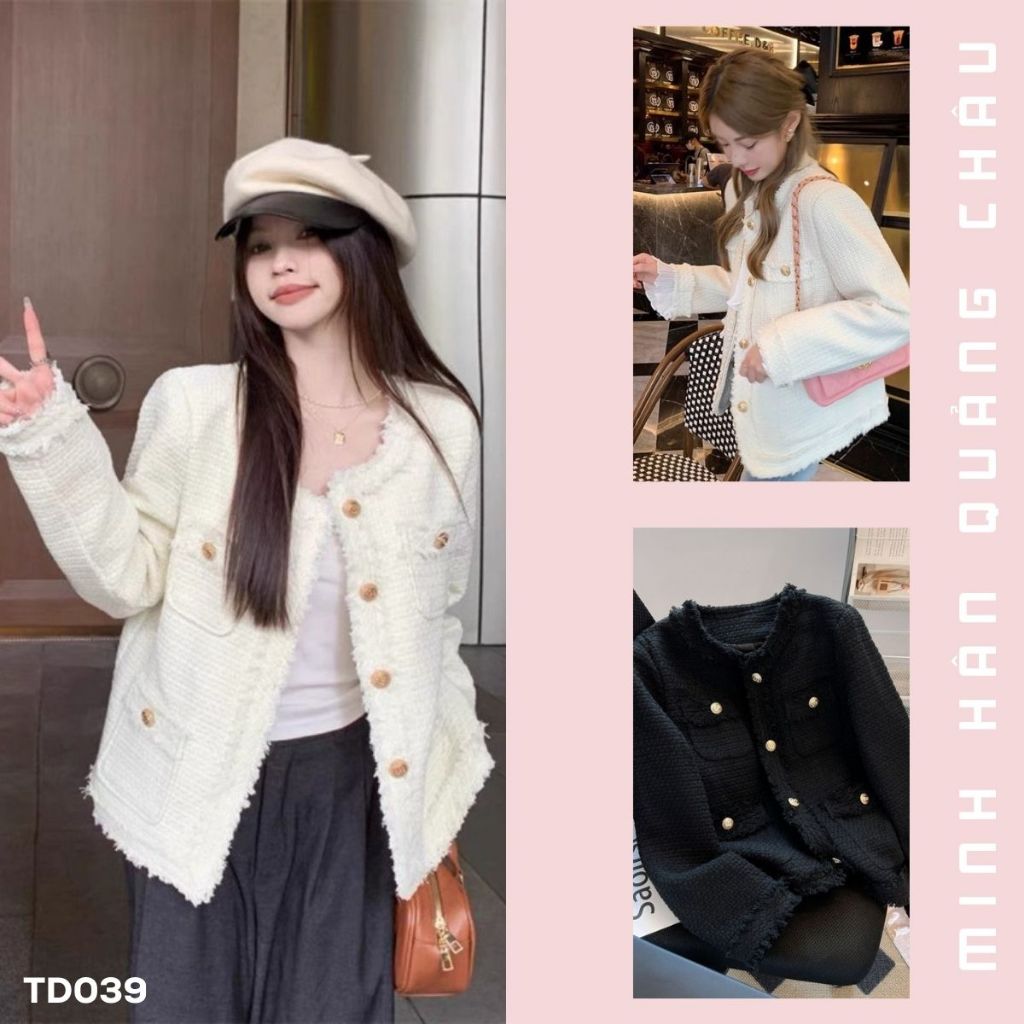 Áo khoác dạ Tweed tiểu thư túi hộp phối cúc vàng sang chảnh cho nữ hàng QC cao cấp-TD039 Thời Trang Center