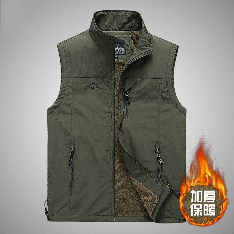 Áo Khoác Ghi Lê Bằng cotton Lông Cừu Dày Dặn Thời Trang Thu Đông Dành Cho Nam Trung Niên Thời Trang Center
