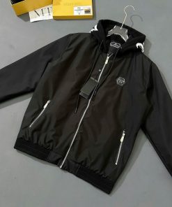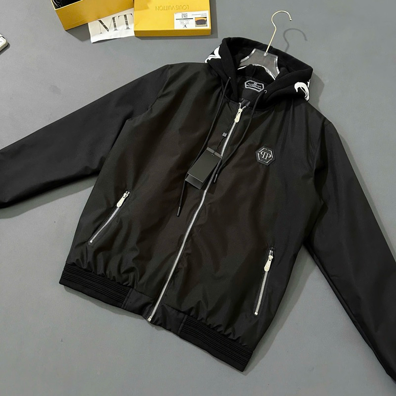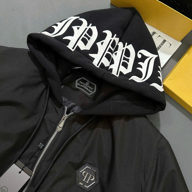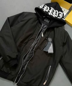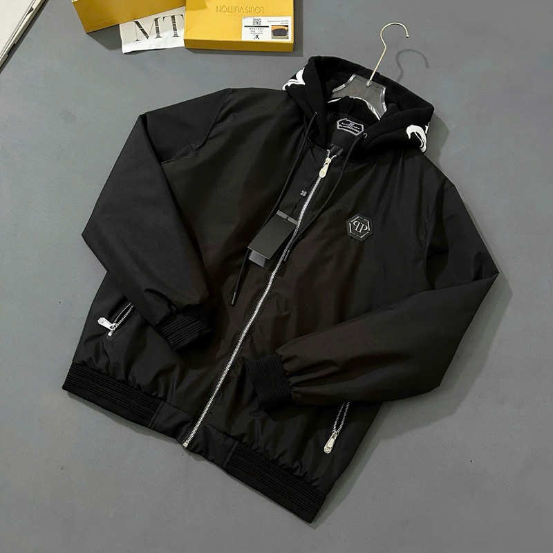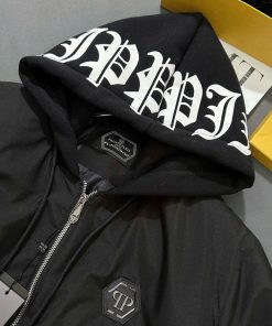 Áo khoác gió có mũ nam Philipp Plein thêu logo sắt ngực mũ nỉ 2 lớp in chữ lót trần bông boy phố AK199P Thời Trang Center