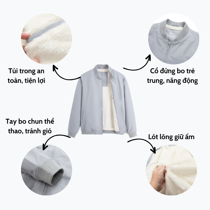 Sẵn Áo khoác gió nam bomber siêu cản gió GNH Active 2 lớp lót lông cao cấp siêu ấm form dáng thể thao-thoitrangcenter
