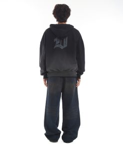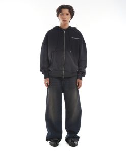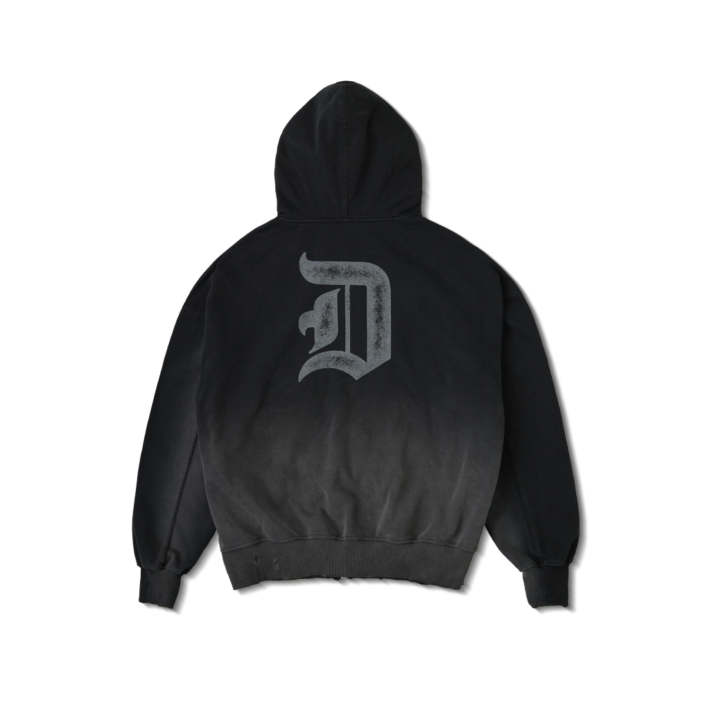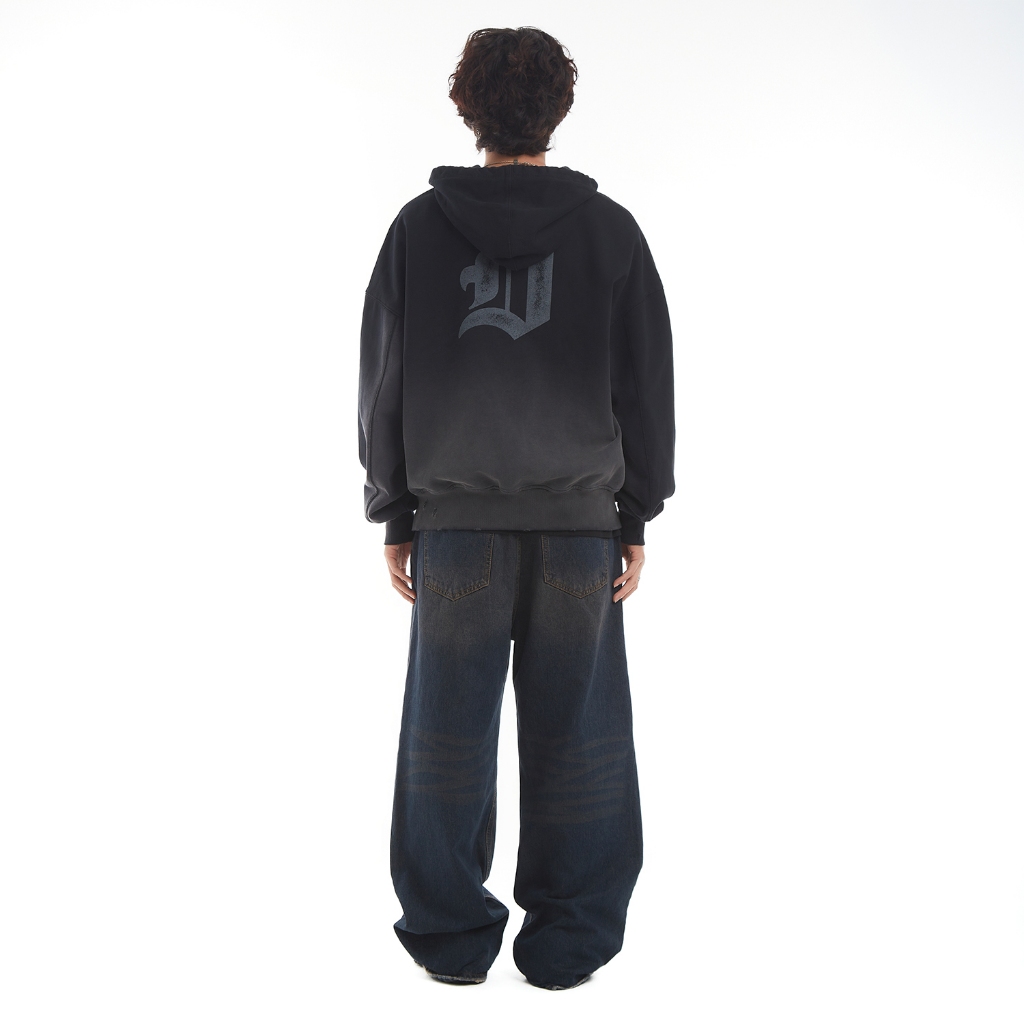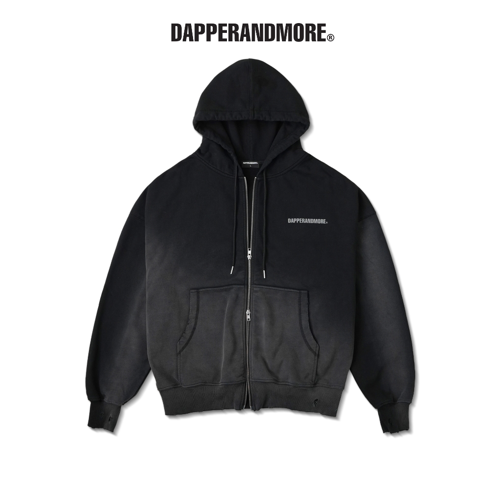 Áo Khoác Hoodie DAPPERANDMORE Trash Zipped Wash Vải Nỉ Chân Cua 100% Cotton In Trame Hiệu Ứng Mài Rách – Black Thời Trang Center