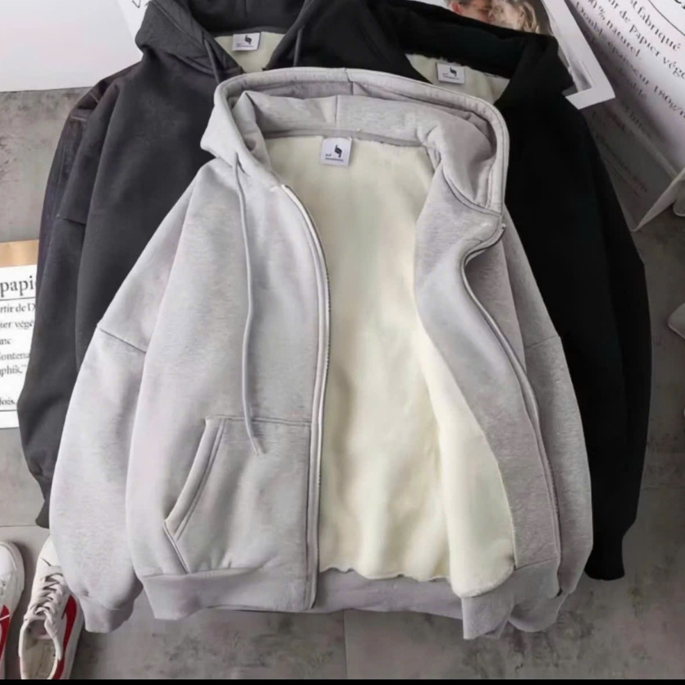 * Thông Tin Sản Phẩm:Áo Khoác Hoodie Zip Lót Lông Cừu Cực Dày Dặn – Áo Khoác Nỉ Bông Cao Cấp Form Dáng Basic Cho Nam Nữ siêu hottrend 2024
