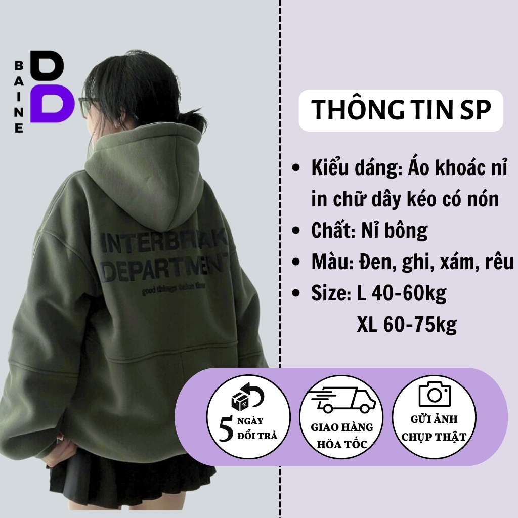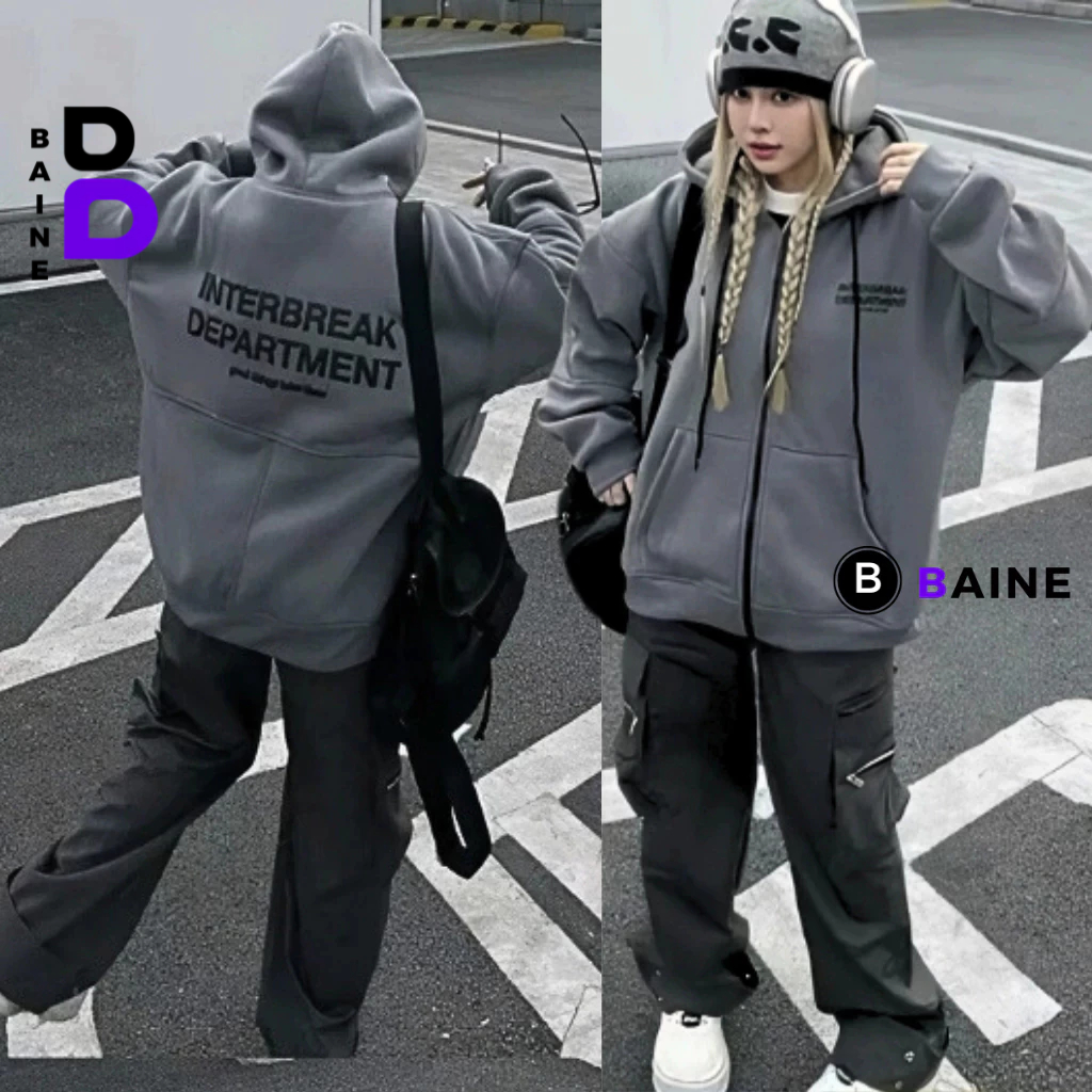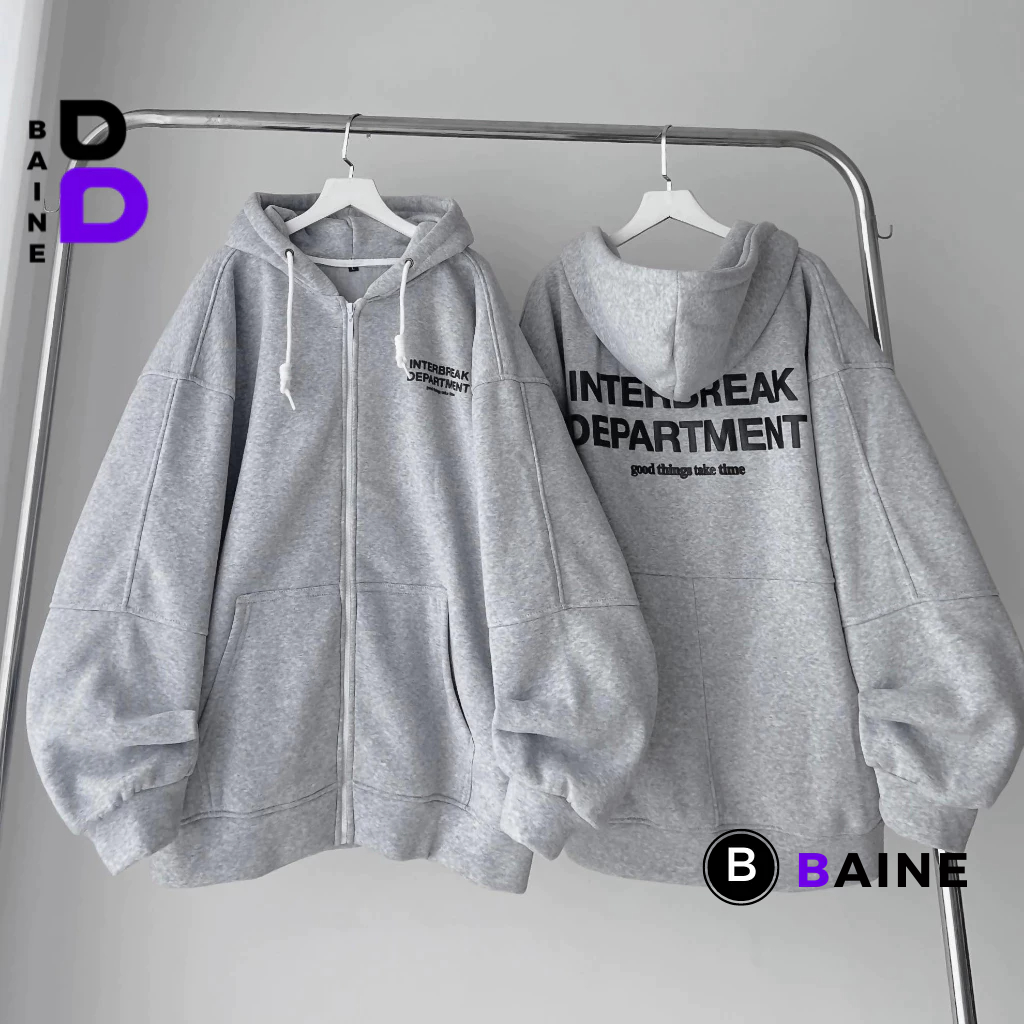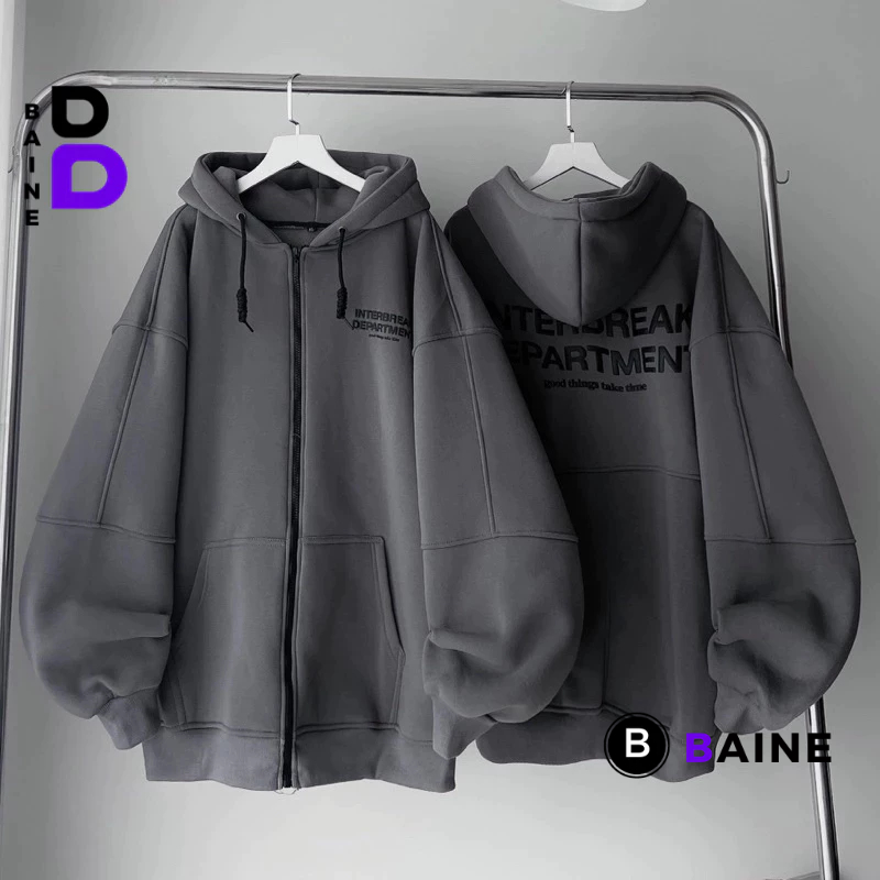 Sẵn Áo Khoác INTER BREAK In Nổi Chất Nỉ Bông Dày Dặn, Áo Hoodie Dây Kéo Zip Unisex Nam Nữ Form Rộng Nhiều Màu BAINE-thoitrangcenter