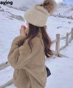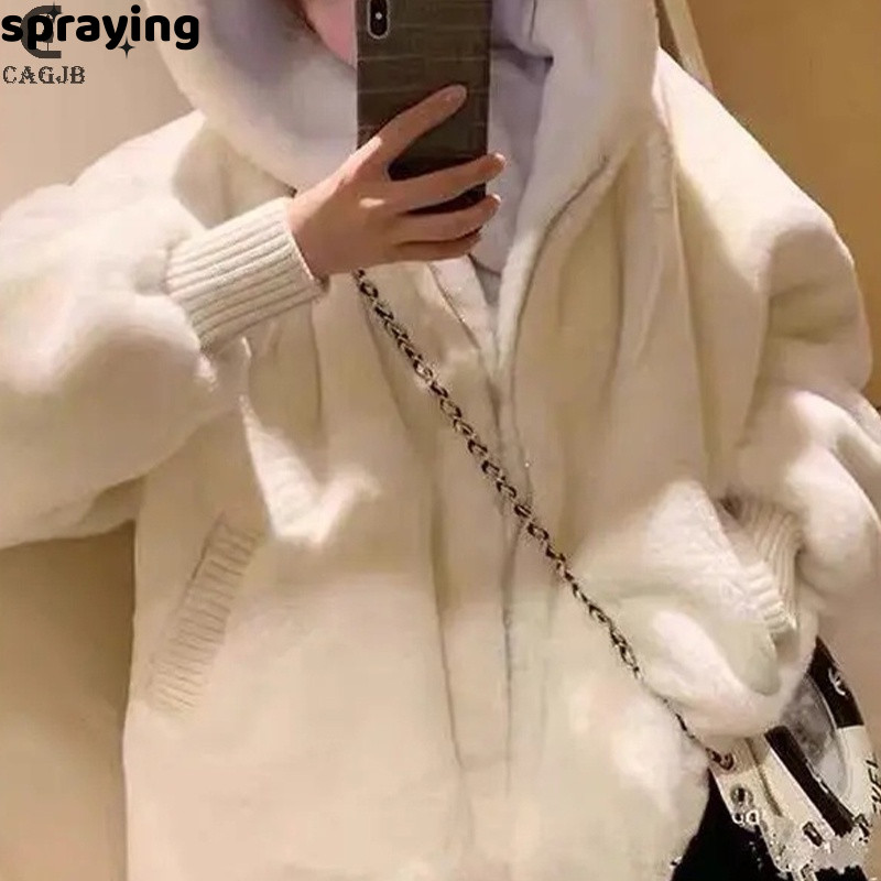 Sẵn Áo Khoác Lông Cừu Có Mũ Trùm Đầu Tay Dài Màu Trơn Ấm Áp Mùa Thu Đông Dành Cho Nữ GM2454TM8-thoitrangcenter