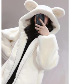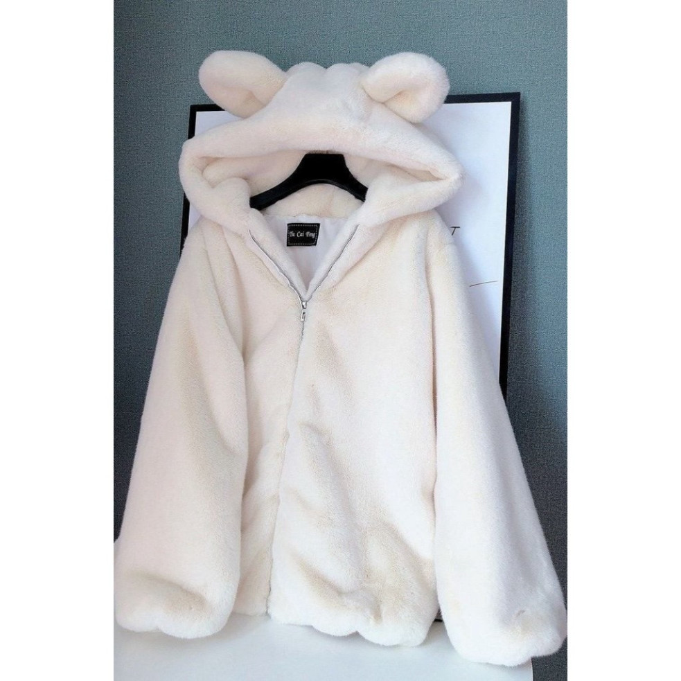 Sản Phẩm : Áo Khoác Lông 2 lớp nam nữ tai gấu khóa kép Áo Lông Thỏ Phối Tai Gấu Mèo