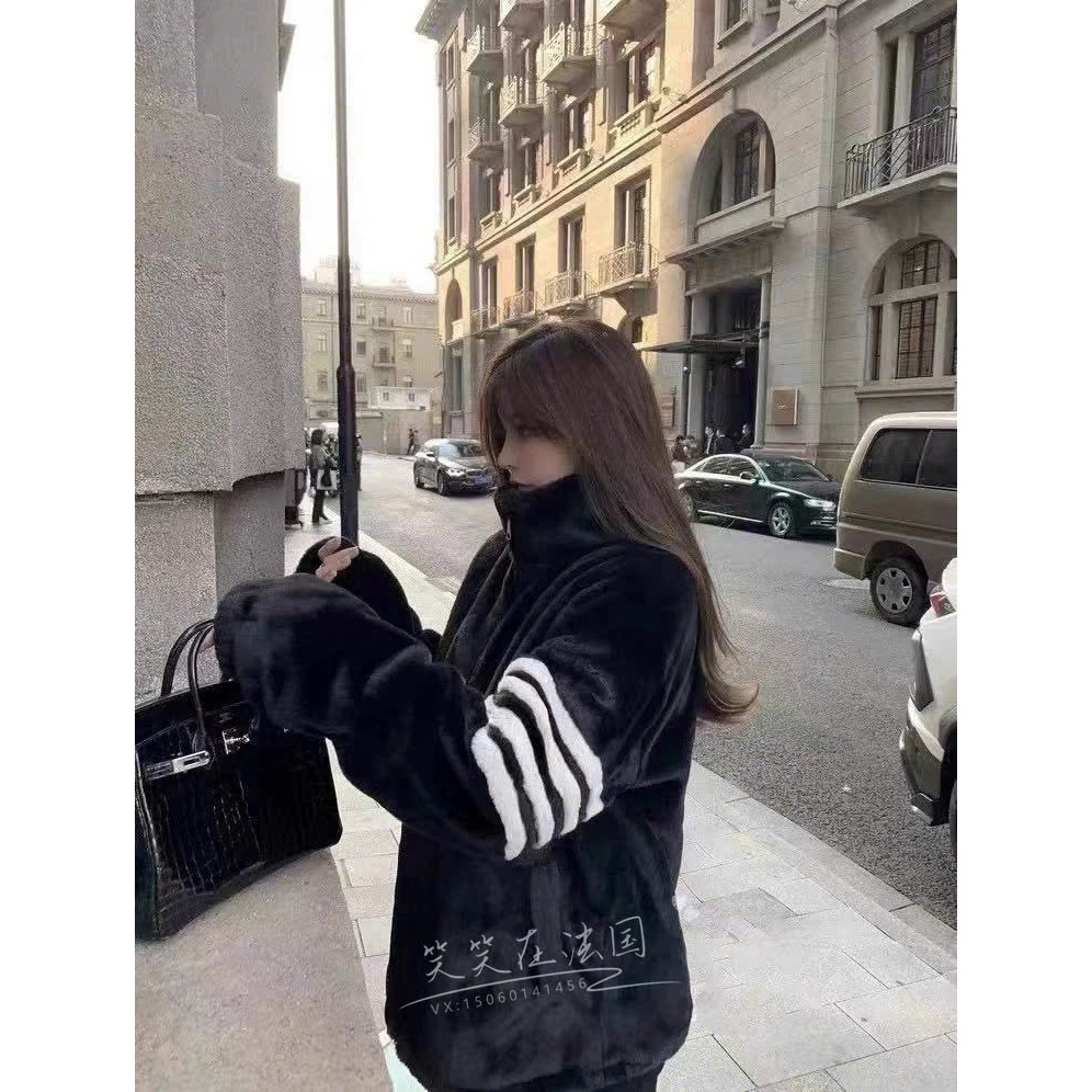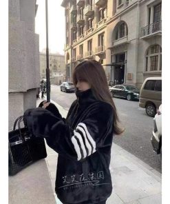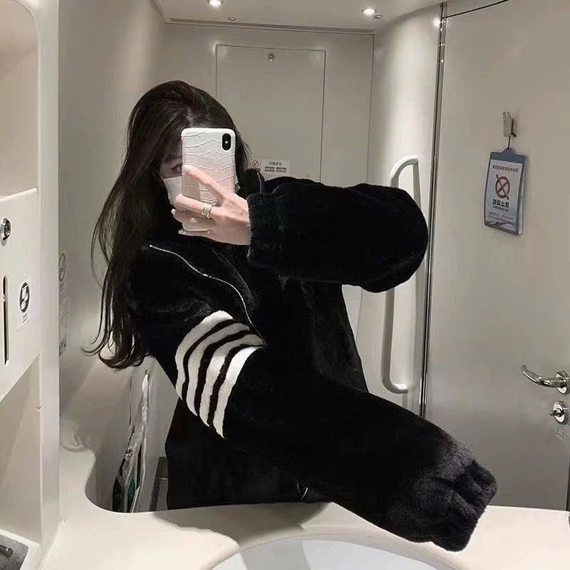 Sẵn Áo khoác lông thỏ thome sọc kẻ tay cao cấp , mềm mượt , 3 lớp dày dặn xịn xò DREP OFFICIAL-thoitrangcenter