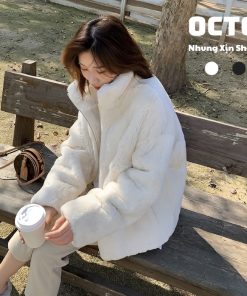 – Chất liệu: lông thỏ nhân tạo mềm mại dày dặn cực kỳ đã, khi mặc lên sẽ tạo cảm giác dễ chịu mà sang trong; bên trong áo trần lớp phao giúp giữ ấm không lo bị lạnh