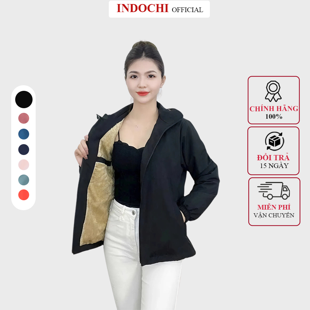 Áo khoác gió nữ lót lông cừu INDOCHI 3C PLUSS trẻ trung năng động, cản gió, dữ ấm tốt, thiết kế dễ phối đồ