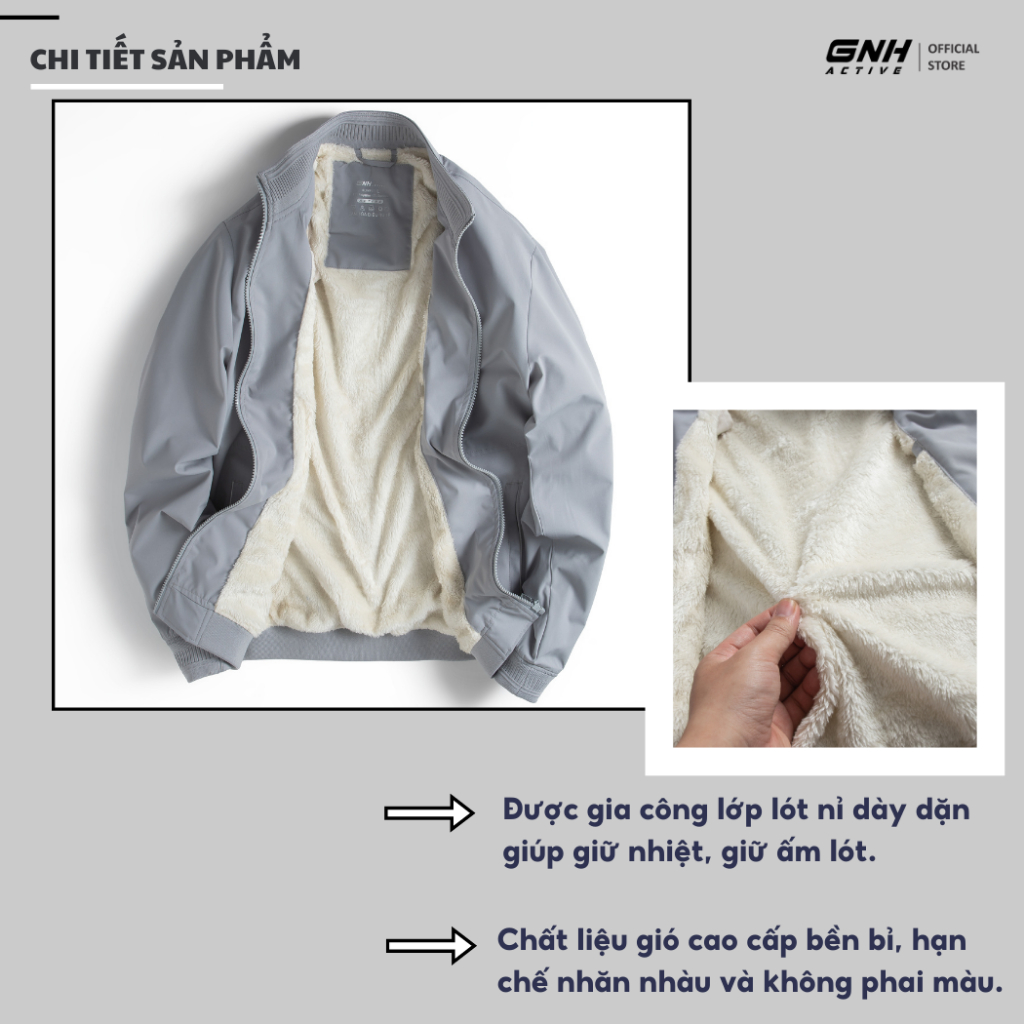 Áo khoác nam bomber siêu cản gió GNH Active Áo Khoác Dù 2 lớp lót lông cừu siêu ấm | GNH